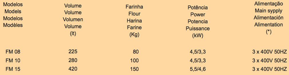 Características principales: - Dos velocidades de rotación de horquilla - Máquina robusta y silenciosa - Freno para regulación de la velocidad de rotación de la artesa - Gran eficacia de la amasadura - Calentamiento muy reducido de las masas - Pintura de alta resistencia - Rejillas de protección, artesa y horquilla en acero inoxidable