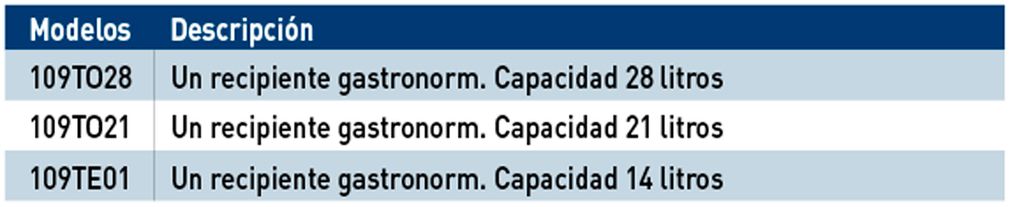 Atemperador 60x40 Atemperador con funcionamiento de resistencias en seco. Se suministra con placa lisa para conversión de mesa caliente. Posibilidad de combinar diferentes capacidades mediante distintos modelos de recipiente. Sin mantenimiento.