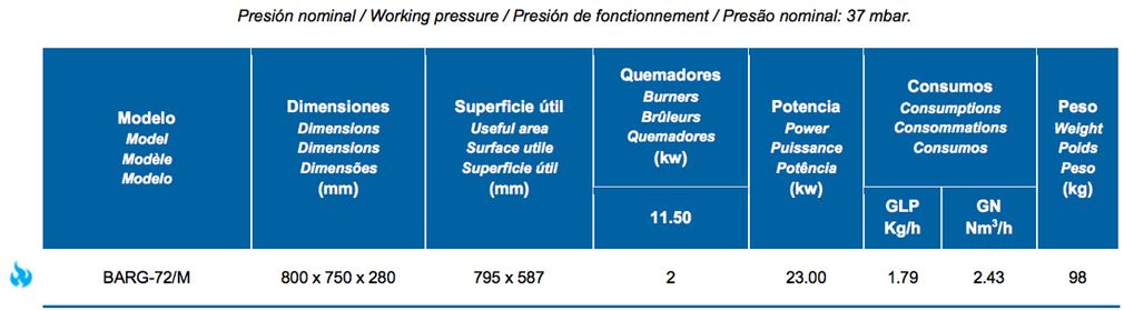 - Quemadores tubulares de gran rendimiento (70%) fabricados en acero inoxidable.