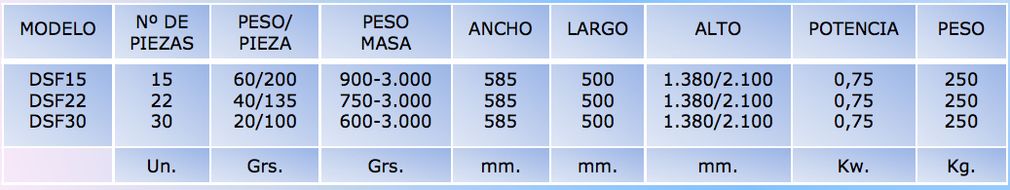 Para ver todos los modelos disponibles haga clic en la imagen de la tabla.