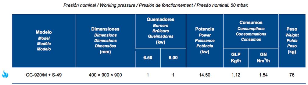 • Quemadores de alto rendimiento diseñados para ofrecer el máximo poder calorífico posible, con tapas de latón mecanizado y cuerpo en hierro fundido con forma de pipa para evitar colapso de los inyectores.