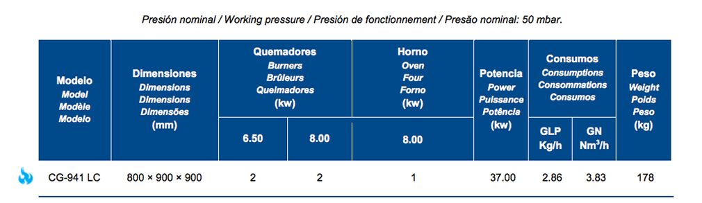 • Encimera fabricada en 1 mm de espesor compuesta de fuegos abiertos con piloto de encendido, válvula de seguridad y termopar.