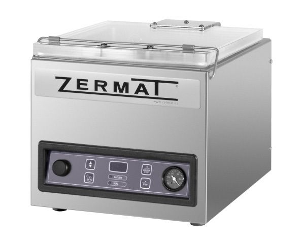Construcción en acero inox Control de vacío por tiempo (segundos) Control de tiempo de sellado (segundos) Programa de mantenimiento bomba de vacío Tecla stop para interrumpir el ciclo (con o sin sellado) Tapa plana metacrilato Cámara interior con cantos redondos para fácil limpieza