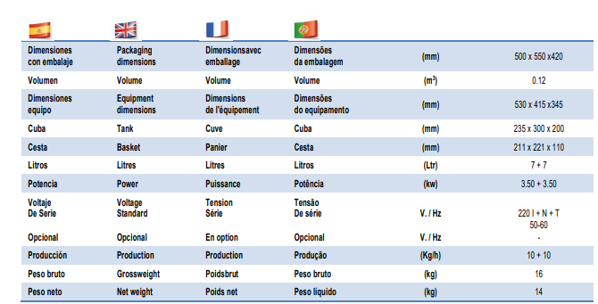 • Gama de freidoras diseñada para ofrecer las máximas combinaciones de trabajo con las características de: diseño,