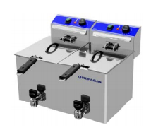 Nuestras modelos de freidora industrial de tamaño pequeño están realizadas en acero inoxidable en una pieza de un solo golpe de embutición, sin juntas, soldaduras ni tubos de quemador en su interior, lo que prologará la vida de tu equipo y reducirá el número de incidencias que pudieran surgir. Sus resistencias son acorazadas, también en acero inoxidable y tienen una regulación por termostato de control de 50ºC a 190ºC y otro termostato de seguridad de calibración fija a 240ºC. Disponemos de modelos con dos cubas para que puedas freír diferentes grupos de alimentos (vegetales, pescados, carnes…) y que tus recetas no se vean afectadas por la mezcla de sabores.
