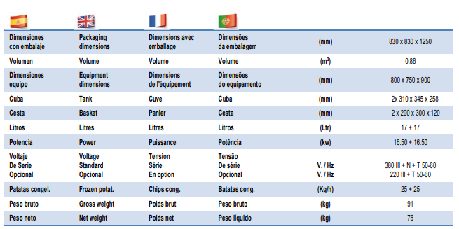 Gama de freidoras diseñada para ofrecer las máximas combinaciones de trabajo con las características de: diseño, potencia,