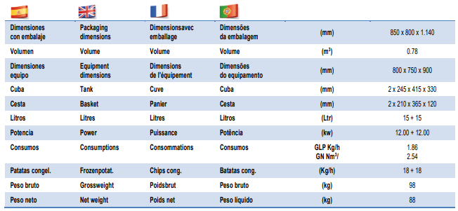 Nuestras freidoras a gas son de la más alta calidad en acero inoxidable, cubas fabricadas en una pieza, con piloto de encendido manual, piezoeléctrico, termopar y regulación por válvula termostática. Las freidoras tienen un sistema patentado de funcionamiento a través de perneos comunicantes difusores del calor, que te permitirán una temperatura uniforme, mayor rendimiento y menor consumo. Además podrás disfrutar de una “zona fría” para facilitar la precipitación de residuos y que tu aceite no se carbonice o contamine, además de facilitarte la limpieza de tu freidora y su mantenimiento.