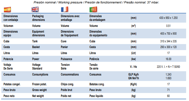 Nuestras freidoras a gas son de la más alta calidad en acero inoxidable, cubas fabricadas en una pieza, con piloto de encendido manual, piezoeléctrico, termopar y regulación por válvula termostática. Las freidoras tienen un sistema patentado de funcionamiento a través de perneos comunicantes difusores del calor, que te permitirán una temperatura uniforme, mayor rendimiento y menor consumo. Además podrás disfrutar de una “zona fría” para facilitar la precipitación de residuos y que tu aceite no se carbonice o contamine, además de facilitarte la limpieza de tu freidora y su mantenimiento.