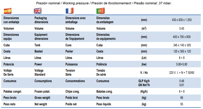 • Gama de freidoras diseñada para ofrecer las máximas combinaciones de trabajo con las características de: diseño, potencia,