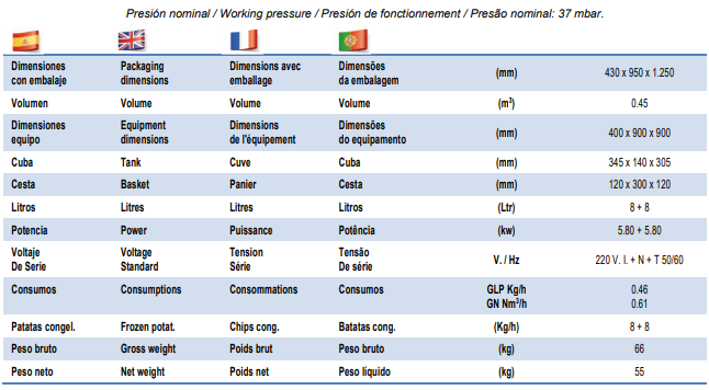 Nuestras freidoras a gas son de la más alta calidad en acero inoxidable, cubas fabricadas en una pieza, con piloto de encendido manual, piezoeléctrico, termopar y regulación por válvula termostática. Las freidoras tienen un sistema patentado de funcionamiento a través de perneos comunicantes difusores del calor, que te permitirán una temperatura uniforme, mayor rendimiento y menor consumo. Además podrás disfrutar de una “zona fría” para facilitar la precipitación de residuos y que tu aceite no se carbonice o contamine, además de facilitarte la limpieza de tu freidora y su mantenimiento.