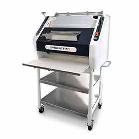 3 cilindros Ajustes mecánicos de rodamiento. y alargamiento. Alfombra de fieltro Para masa entre 50 y 1200 g. Mesa de recepción plegable. Accionado por cadena.