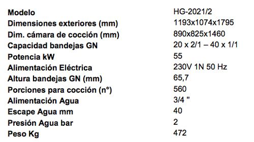 • Cámara de cocción abrillantada construida en acero AISI 304, con techo y fondo de acero AISI 316L (1,2 mm) y cantos redondeados sin juntas, capaz de recibir contenedores GN1/1 y 2/1