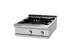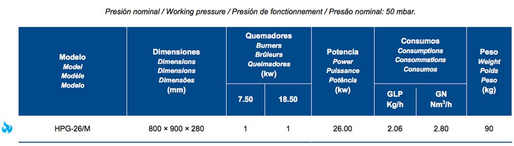 - Encimera fabricada en 2 mm de espesor compuesta de fuegos abiertos con piloto de encendido, válvula de seguridad y termopar. Quemadores de alto rendimiento en hierro fundido con forma de pipa para evitar colapso de los inyectores. Parillas fabricadas en hierro fundido con esmalte antiácido, de dimensiones 727 x 685 mm. Máxima protección de piloto oculto por un protector específicamente diseñado para resguardarlo del desborde de elementos superiores.