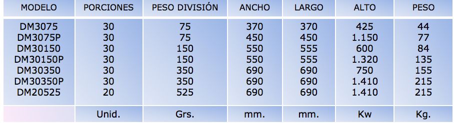 La divisora manual está construida en fundición. Dispone de cuchilla y cazuela en acero inoxidable, para una mayor resistencia. De fácil manejo, esta divisora está disponible en varios modelos.