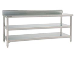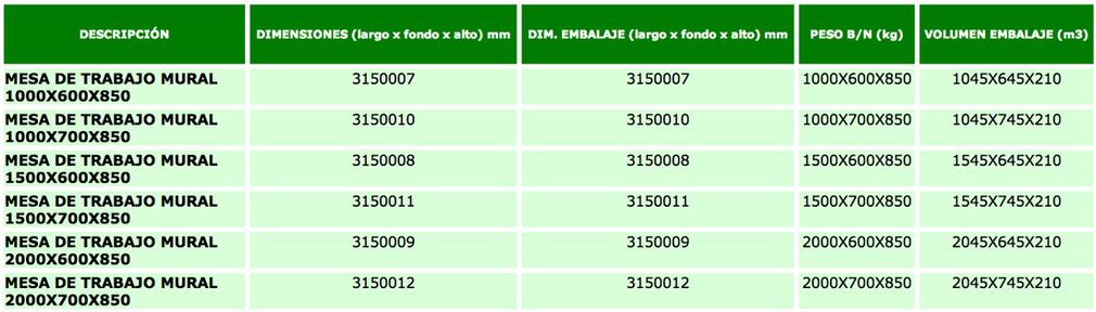 Mesa fabricada en acero inoxidable 304, acabado satinado, con ausencia total de madera. Cumple con las Normativas Sanitarias aplicadas. Modelos 600 y 700, en versiones mural y central. Encimera inyectada con espuma inocua libre de CFC's. Mesas murales con radio de 5 mm entre el peto y la zona de trabajo, evitando la retención de suciedad. Estante inferior con refuerzo metálico. Patas redondeadas, ofreciendo un mejor aspecto visual, y pies de inox. Sistema de regulación en altura mediante niveladores de mayor recorrido y rosca oculta. Patas traseras adelantadas para salvar la curva sanitaria entre el suelo y la pared. Mesa preparada para la incorporación de un estante intermedio opcional, de fácil montaje y refuerzo metálico.