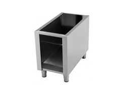 Soportes fabricados en acero inoxidable AISI-304 (18/10) con acabado scotch, diseñados específicamente para acoplar de manera rápida y sencilla cualquier tipo de equipo en encimera, en 400 mm de ancho y 750 mm de profundo. Diseño de gran calidad que permite soportar regímenes de trabajo industriales. Acoplamiento fácil y directo conformando aparatos en altura 900 mm y permitiendo crear bloques modulares completos a partir de una amplia gama de producto. Posibilidad de incorporar puertas en todos los modelos (opcional) y patas regulables en altura.