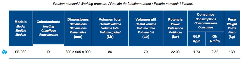 • Piloto de encendido manual y con piezoeléctrico, termopar y quemador tubular bajo cuba.