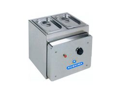 Indispensable en toda confitería, pues conserva a los grados deseados, y por tiempo indefinido, toda clase de coberturas. Equipado con una resistencia eléctrica sumergida en el doble fondo, y un termostato graduable a voluntad. Consumo insignificante y su manejo resulta facilísimo.