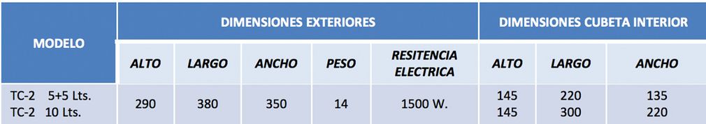 El temperador de cobertura TC-2 está compuesto de cuerpo exterior y recipiente interior de chapa de acero inoxidable. Su funcionamiento es automático por medio de baño maría.